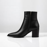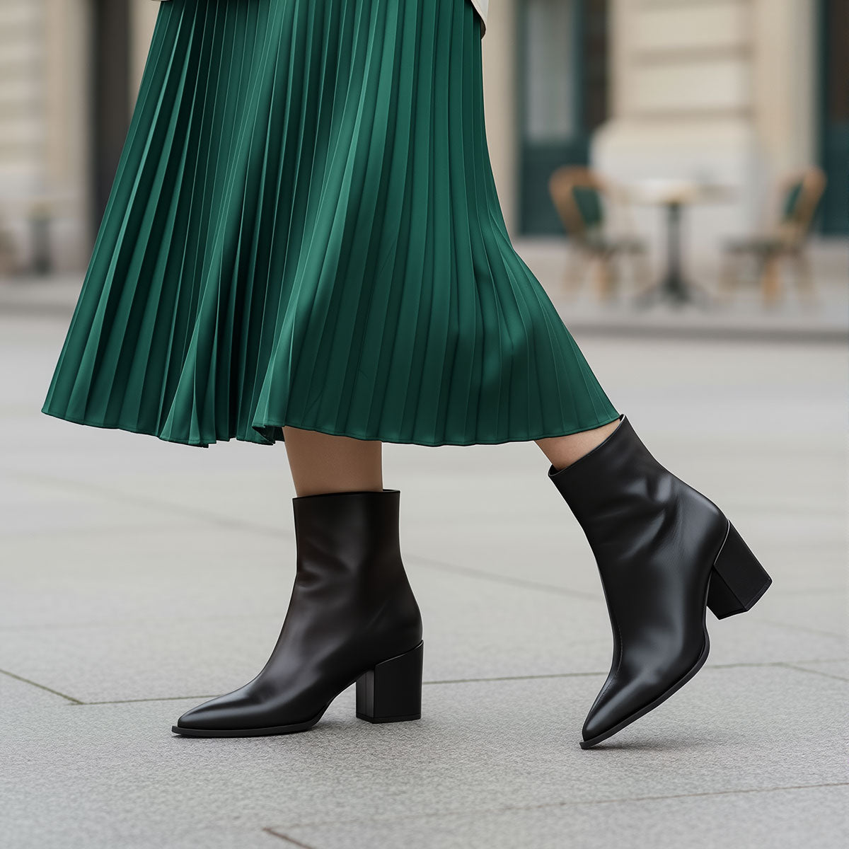 Botines negros con tacón bloque y diseño estructurado: clásicos, versátiles y con poder silencioso.